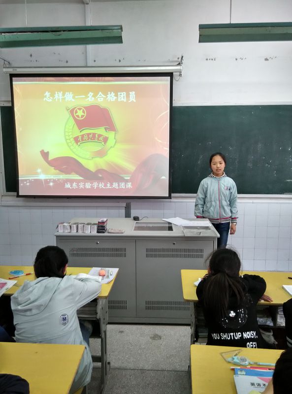在落实“一学一做”教育实践过程中,2017年4月25日城东实验学校团总支组织团员上了一堂以“怎样做一名合格团员”为主题的团课。