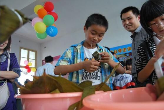 我校组织开展端午节与家长一起动手包粽子活动